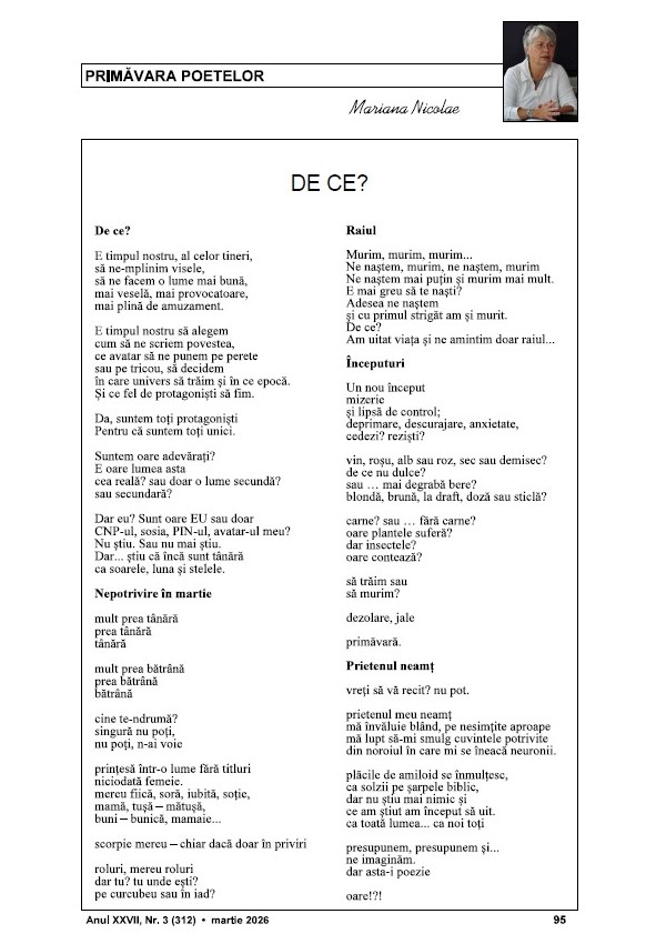 Cartea Marianei Nicolae aduce cu sine o prospețime rară și o eleganță a adevărului rostit fără patetism. Este un volum care merită toată atenția, nu doar pentru frumusețea poetică, ci și pentru liniștea interioară pe care o lasă în urmă.